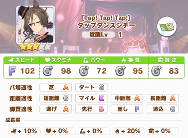 スキル発動条件を考えると、中距離かつ逃げでの出走に限定されるので適正は気にしなくて大丈夫そうですね。